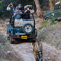 The Ranthambore National park is thronged by the tourists throughout the year to catch a glimpse of the majestic predators in their natural habitat. For tiger sighting there are 1 to 5 main zones. Recently 5 more zones, zone 6 to 10 have been added to the park. In these zones 6 to 10 rare cat specie the Caracal is widely seen. At night there is possibility of sighting the Hyenas and jungle cats in the village areas.